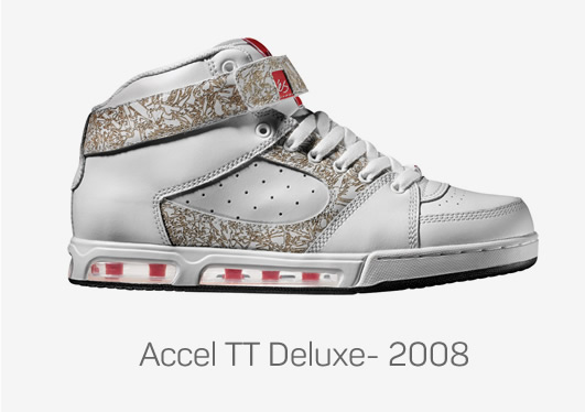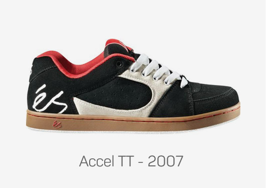 En todos estos años, las Accel fueron sometidas a un montón de actualizaciones. Además de las originales, aparecieron las Accel TT, las Accel Plus, hasta la época dorada de las cupsoles. Cuando la demanda comienza a caer, éS crea una versión vulcanizada, con menos padding y más slims, las llamadas Square one.