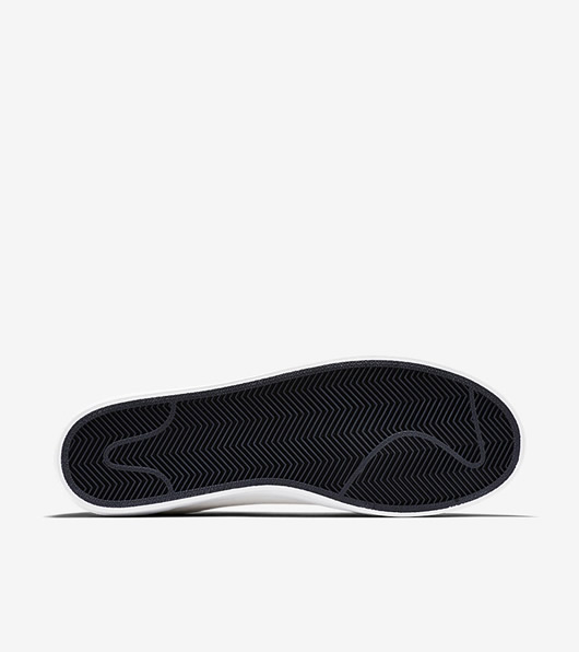 La clásica media suela vulcanizada de color blanco, y la suela en color negro con el diseño de espigas, tan característico de las Blazer, que en la actualidad utilizan las Janoski.
