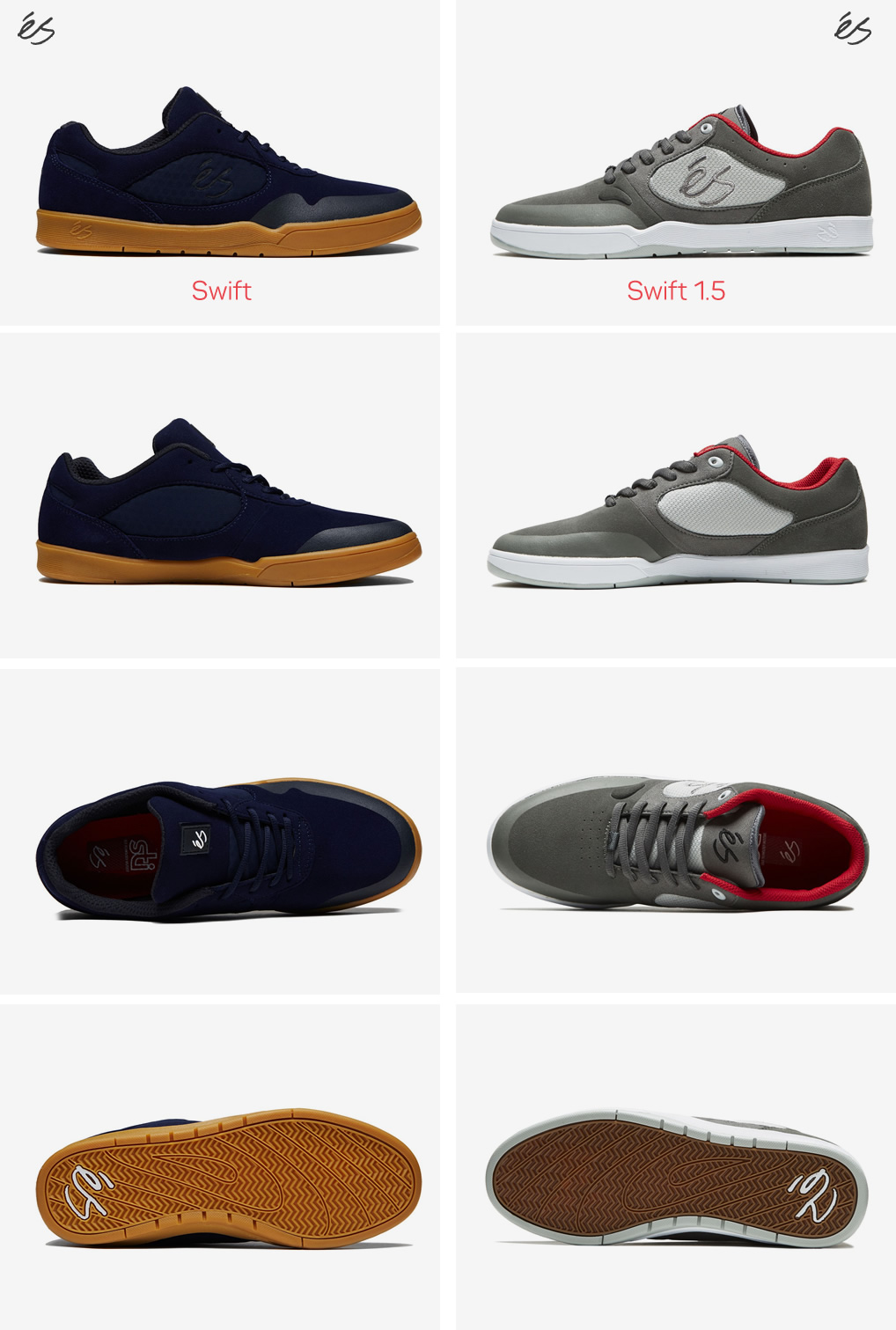 Lanzadas en el 2015, las éS Swift rápidamente se convirtieron en una de las siluetas más vendidas de la marca; Esto se debe a que las Swift son unas zapatillas pensadas desde su concepción, para andar en skate.