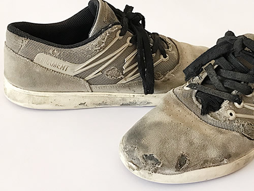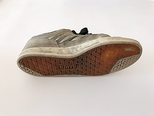 La que sí mostró desgaste fue el panel lateral, sobre todo en el área del ollie. Sabíamos que este iba a ser un punto crítico de las zapatillas, sobre todo por el material del mismo (mesh), que si bien nos brinda un buen flujo de aire, suele desgastarse mucho más rápido debido al constante contacto con la lija.