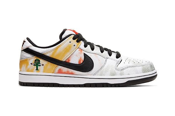 Las Dunk Low Raygun en dos colores, las home y las away, las cuales incorporan el mítico tye dye que Bodecker utilizaba muy a menudo en su buzo de los Roswell Rayguns.